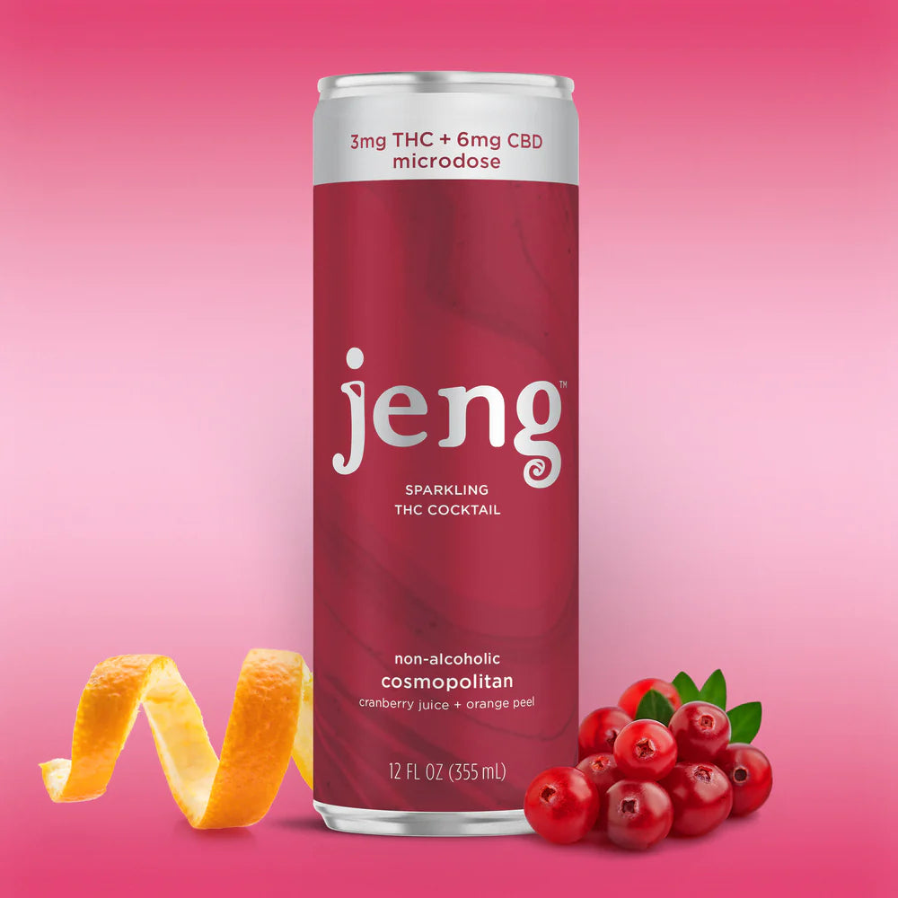 Jeng reimagines the iconic ’90s cocktail as a modern, hemp-infused delta 9 beverage within our line of non-alcoholic beverages and functional beverages. Each can blends tart cranberry with zesty orange peel and botanical juniper, finished with a smooth 3 mg Delta-9 THC and 6 mg CBD microdose. The result is a chic, ready-to-drink cocktail for the sober-curious. Whether it’s Dry January or sun-soaked summer parties, the cosmopolitan delivers all the fabulous energy without the vodka, sugar crash, or hangover.