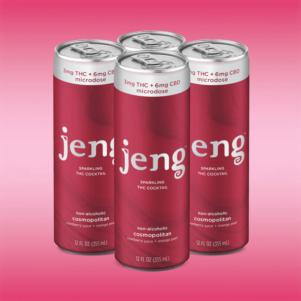 Love a flirty ’90s Cosmo but not the booze bloat?Jeng’s THC cocktails remix the iconic Cosmopolitan with tangy cranberry, zesty orange peel, and a whisper of juniper. A balanced microdose 3 mg hemp‑derived Delta‑9 THC + 6 mg CBD delivers a gentle lift in a sleek, 50‑calorie, low‑sugar can. Sip, smile, sparkle